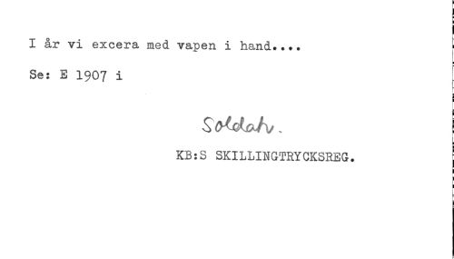 //// I år vi excera med vapen i hand.... t //// < //// Se: E 1907 i //// i //// KB:S SKILLINGTRYCKSREG. j //// - I ////
