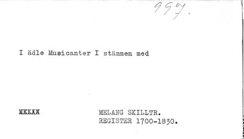 //// I ädle Musicanter I stämmen med //// KKXÅK MELANG SKILLTR. //// REGISTER 1700-1830. ////