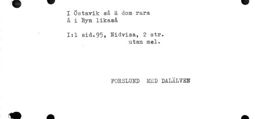 //// I Östavik så ä dom rara //// å i Byn likaså //// 1:1 sid.95, Nidvisa, 2 str. //// utan mel. //// FORSLUND KED DALÄLVEN ////