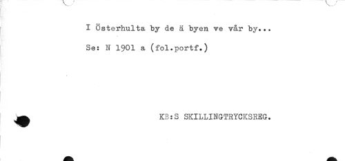 //// I Osterhulta by de ä byen ve var by... //// Se: N 1901 a (fol.portf.) //// I //// ^^ KB:S SKILLINGTRYCKSREG. ////