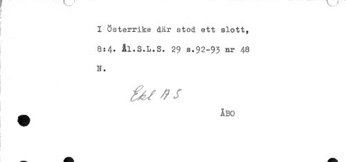 //// I Österrike där stod ett slott, //// 8:4. ål.S.L.S. 29 s.92-93 nr 48 //// N. //// ^ ÅBO ////