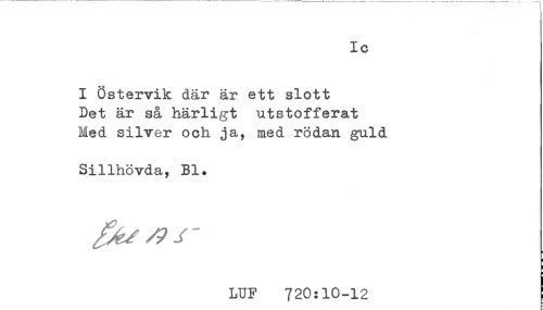 //// Ic //// I Östervik där är ett slott //// Det är så härligt utstofferat //// Med silver och ja, med rödan guld //// Silihövda, Bl. //// LUF 720:10-12 ! ////