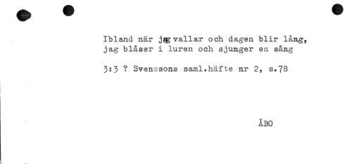 //// Ibland når j§g vallar och dagen blir lång, //// jag blåser i luren och sjunger en sång //// 3:3 ? Svenssons saml.häfte nr 2, s*7S //// ÅBO //// * //// i ////