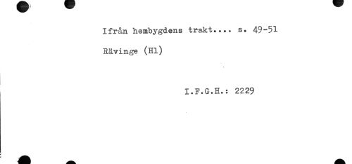 //// Ifrån hembygdens trakt.... s. 49-51 //// Rävinge (Hl) //// , I.F.G.H.: 2229 ////