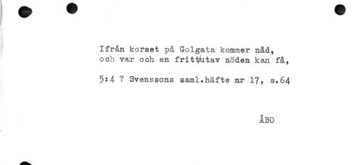 //// Ifrån korset på Golgata kommer nåd, //// och var och en fritt^Ltav nöden kan få, //// 5:4 ? Svenssons saml.häfte nr 17, s.64 //// ÅBO //// ) ////