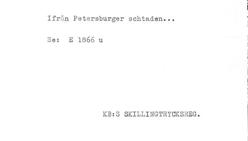 //// Ifrån Petersburger schtaden... //// Se: E 1866 u //// ! //// * //// i //// KB:S SKILLINGTRYCKSREG. ////