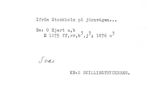 //// Ifrån Stockholm på järnvägen... //// Se: 0 Hjert a,b ? y //// E 1875 ff,rr,b^,j^; 1876 o^ //// KB:S SKILLINGTRYCKSREG. ////