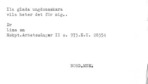 //// Ila glada ungdomsskara //// vila heter det för mig.. //// Dr //// Lima sn //// Mskpt.Arbetssånger II s. 973.E.U. 28354 //// NORD, MUS*; ! //// a ////