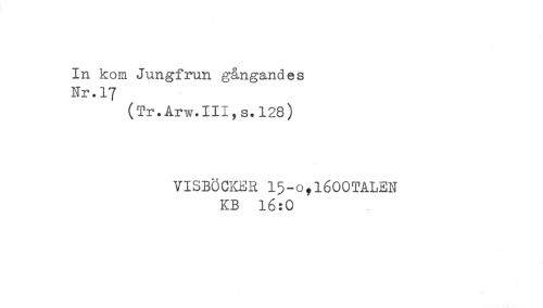 //// In kom Jungfrun gångandes //// Nr. 17 //// (Tr.Arw.III,s.l28) //// VISBÖCKER 15-o,l600TALEN //// KB 16:0 ////