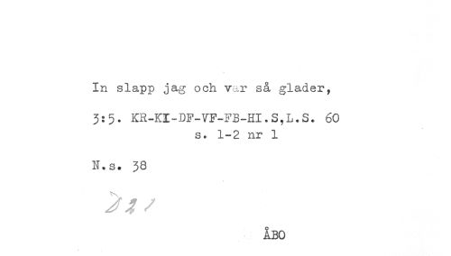 //// In slapp jag och v^r så gläder, //// 3:5. KR-KI-DF-VF-FB-HI.S,L.S. 60 //// s. 1-2 nr 1 //// N.s. 38 //// ÅBO ////