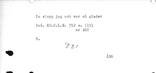 //// In slapp jag och var så gläder //// 2:6. KO.S.L.S. 352 s. 1151 //// nr 482 //// N. //// ^^ ÅBO ////