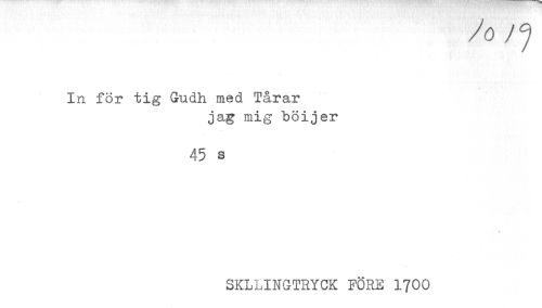 //// /o //// In för tig Gudh med Tårar //// jag mig böijer //// 45 s //// * //// SKLLINGTRYCK FÖRE 1700 ////