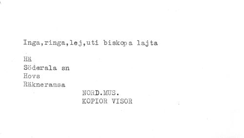 //// Inga,ringa,lej,uti biskopa lajta //// Hä //// Söderala sn //// Hovs //// Räkneramsa //// NORD.MUS. //// KOPIOR VISOR ////