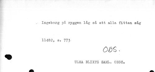 //// .- Ingeborg på ryggen låg så att alla fittan såg //// 11482, s. 773 //// ULMA BLIXTS SAML. OBSC. ////