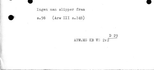 //// j Ingen man slipper fram //// i ^ s.98 (Arw III S.248) //// j //// D 29 //// ARV. MS KB VS 2:2 //// ! ////