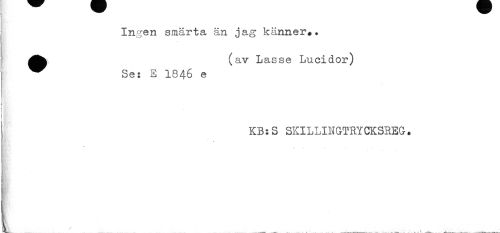 //// j Ingen smärta än jag känner*. //// ' (av Lasse Lucidor) //// * Se: E 1846 e //// i //// KB:S SKILLINGTRYCKSREG. ////