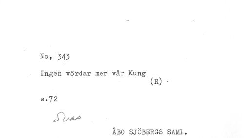 //// No, 343 //// Ingen vördar mer vår Kung //// (R) - //// s.72 //// ÅBO SJÖBERGS SAML. ////