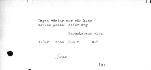 //// Ingen vörda.r mer vår kung //// varken gammal eller ung //// Skomakarens visa //// 4:6+r Ebbo SLS 2 s.9 //// ÅBO ////