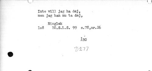 //// Inte vill jag ha dej, //// men jag kan nn ta dej, //// Ringlek //// 1:8 BO.S.L.S. 99 s.78,nr.26 //// ÅBO ////