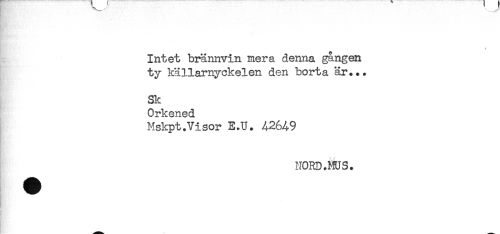 //// Intet brännvin mera denna gången //// ty källarnyckelen den borta är... //// - //// Sk //// Orkened //// Mskpt.Visor E.U. A26A9 //// NORD.HUS. ////