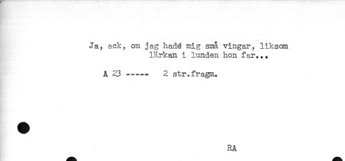 //// Ja, ack, om jag hadé mig sim vingar, liksom //// lärkan i lunden hon far... //// & 23----„ 2 str.fragm. //// RA ////