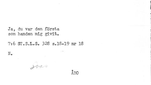 //// i //// < //// i //// <- //// Ja, du var den första //// som handen mig givit. //// 7:6 ST.S.L.S. 328 s.18-19 nr 18 //// N. //// ) //// t //// ! ////