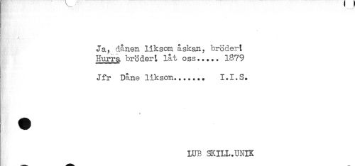 //// t //// t;/'...... ^ //// Ja, dånen liksom åskan, broder t //// Hurra brodert låt oss..... 1879 //// ! Jfr Dåne liksom....... 1.1.S. //// - //// . //// + //// LUB SKILL.UNIK //// _ ////