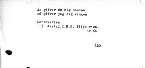 //// M .- ' //// < //// Ja gifver du mig handen //// så gifver jag dig ringen //// Kärleksvisa //// 1:3 J-stad.I.N.E. Slips visb. //// nr 66 //// ÅBO ////