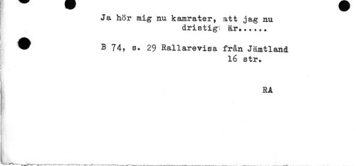 //// Ja hör mig nu kamrater, att jag nu //// dristigt är...... //// * B 74, s. 29 Rallarevisa från Jämtland //// 16 str. //// j //// RA //// ! //// K* - //// i //// ____ .. . ____ ////