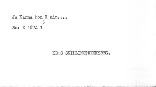 //// Ja Karna hon ä min.... //// 3 //// Se: E 1874 1 //// I //// l //// * //// ! //// KB:S SKILLINGTRYCKSREG. ////