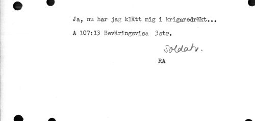//// Ja, nu har jag klätt mig i krigaredräkt... //// A 107:13 Beväringsvisa 3str. //// RÅ ////