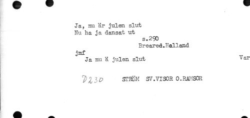 //// t //// Ja, nu är julen slut //// Nu ha ja dansat ut //// s.290 //// Breareå.Halland //// jmf //// Ja nu ä julen slut Val //// % 3 P STBDM SV .VISOR 0. RAMSOR ////