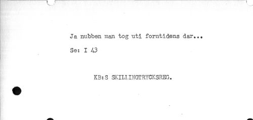 //// - //// Ja nubben man tog uti forntidens dar... //// Se: I A3 //// KB:S SKILIINGTRYCKSREG. //// H/ . ////