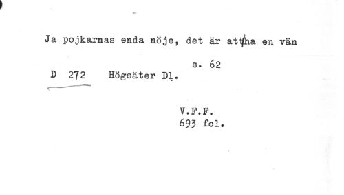 //// Ja pojkarnas enda nöje, det är at^ha en vän //// s. 62 //// D 272 Högsäter Dl. //// V.F.F. //// 693 fol. ////