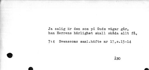 //// Ja salig är den som på Guds vägar går, //// han Herrens härlighet skall skåda allt f&, //// 7:4 Svenssons saml.häfte nr 17,s.13-14 //// ^ ÅBO ////