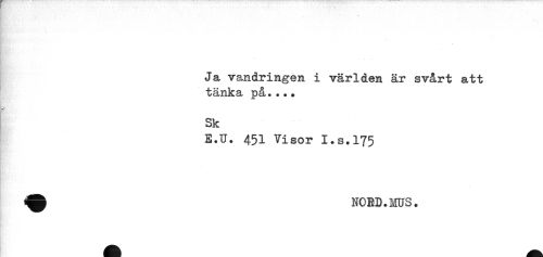 //// Ja vandringen i världen är svårt att //// tänka på.... //// Sk //// E.U. 451 Visor I.s.175 //// ^ NORD.MUS. ////