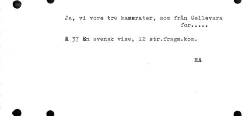 //// Ja, vi vore tre kamerater, som från Gellevara //// for*.... //// & 37 En svensk vise, 12 str.fragm.kom. //// RA //// * ^ //// ) ////