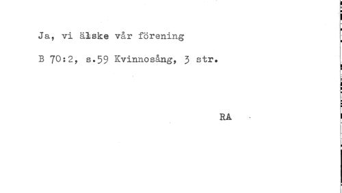 //// H //// ! //// Ja, vi älske vår förening [ //// B 70:2, s.59 Kvinnosång, 3 str. //// RA ////