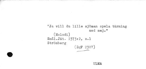 //// / //// "Ja vill du lille sjöman spela tärning //// med mej." //// (Melodi) //// Smål.Jät. 2373:2, s.l //// Strömberg //// (DgF 238?) //// ULMA ////
