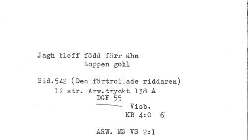 //// ! //// t //// Jagh bleff född förr ähn //// toppen gohl } //// * ^ ^ //// Sid.542 (Den förtrollade riddaren) i //// 12 str. Arw.tryckt I38 A //// DGF 55 //// --- Visb. //// KB 4:0 6 //// ARW. MS VS 2:1 ////