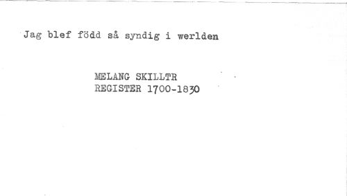 //// Jag blef född så syndig i werlden //// MELANG SKILLTR //// REGISTER I7OO-I83O ////