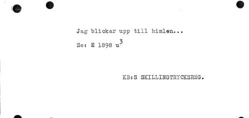 //// Jag blickar upp till himlen... //// Se: E 1898 u^ //// KB:S SKILLINGTRYCKSREG. //// t //// ] ////