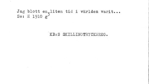 //// Ja,g blott en liten tid i världen varit... //// Se: E 1910 g^ //// KB:S SKILLINGTRYCKSREG. //// < ////