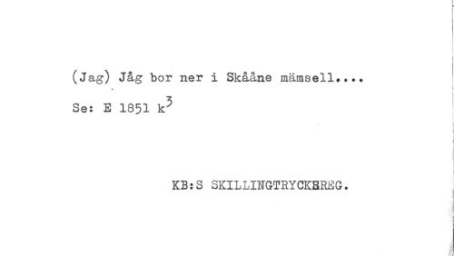 //// (Jag) Jåg bor ner i Skååne //// i //// Se: E 1851 k^ //// KB: S SKILLINGTRYCKBRh'G. ////
