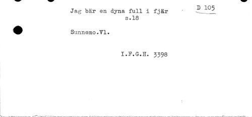 //// Jag bär en dyna full i fjär ' Ii //// s.18 //// ^^ Sunnemo.Vl. //// I.F.&.H. 3398 //// i //// t , //// t a ////