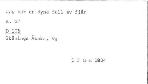 //// Jag bär en dyna full av fjär //// s. 37 //// D 105 //// Skånings Åsaka, Vg //// I F C H 5^34 ////