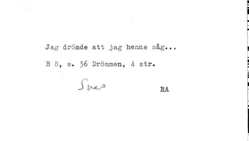 //// * * J_ //// H //// Jag drömde att jag henne såg... a //// B 8, s. 36 Drömmen, 4 str. ' //// J RA ' ////