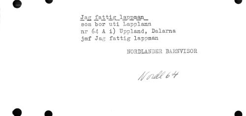 //// som bor uti Lapplann //// nr 64 A i) Uppland? Dalarna. //// jmf Jag fattig lappman //// NORDLANDER BARNVISOR ////