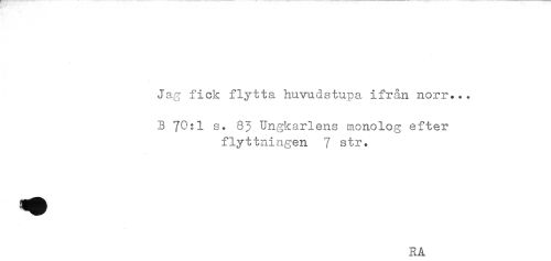 //// Jag fick flytta huvudstupa. ifrån norr... //// B 70:1 s. 8) Ungkarlens monolog efter //// flyttningen 7 str. ////