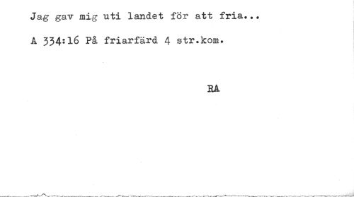 //// Jag gav mig uti landet för att fria... //// A 334:16 På friarfärd 4 str.kom. //// RA ////